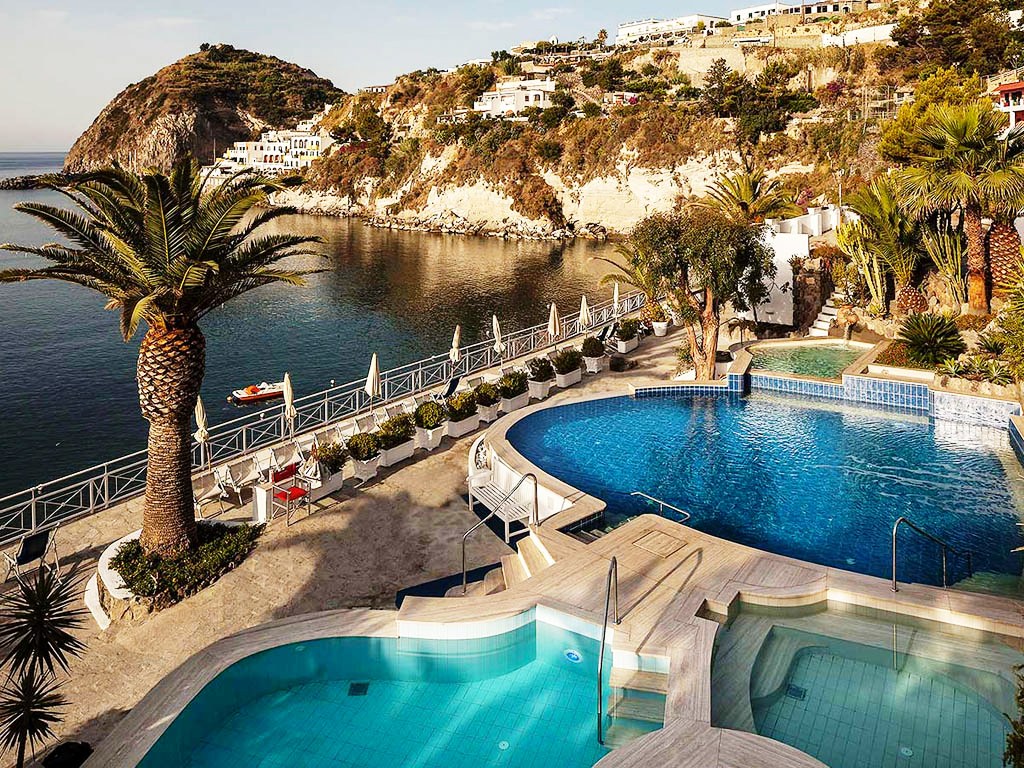 L'isola d'Ischia, detta Isola verde o della giovinezza, è famosa soprattutto per la ricchezza delle sue sorgenti termali e per la bellezza delle sue spiagge e boschi. La natura vulcanica della terra ischitana e il clima sempre mite, anche di inverno, rendono l'isola fertilissima. Ischia è caratterizzata da una estrema varietà di luoghi e panorami davvero suggestivi: dalle spiagge e le baie marine, alle colline coltivate a vite, alla montagna dell'Epomeo circondata da boschi di querce ed acacie. È la terza più popolosa isola italiana, dopo Sicilia e Sardegna e la più grande del golfo di Napoli, sebbene l'Isola di Capri sia di gran lunga quella più famosa. L'isola fu dai Latini chiamata Pithecusa, nome che la tradizione fa derivare dal Greco "pithos" (vaso), cioè l’Isola dei vasai. Le acque termali dell'Isola d'Ischia sono ben conosciute ed utilizzate fin dall'antichità, come dimostrano i numerosi reperti archeologici rinvenuti nel sito di Pithecusa.